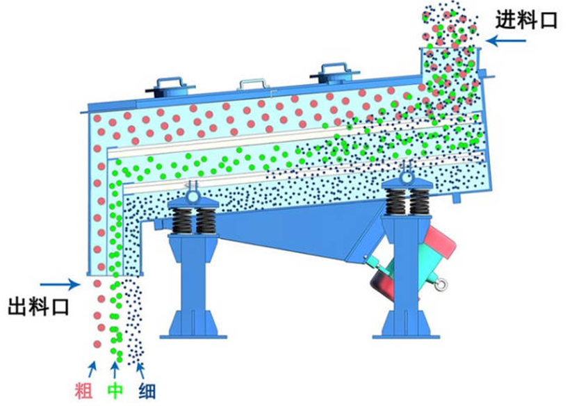 直線振動篩:結(jié)構(gòu)以篩箱為主體,內(nèi)置單層或多層篩網(wǎng)。其核心動力來自兩臺同步反向旋轉(zhuǎn)的振動電機,產(chǎn)生直線激振力。設(shè)備通過減振彈簧支撐于底座,以隔離振動。結(jié)構(gòu)堅固,適合大產(chǎn)量連續(xù)作業(yè)。
