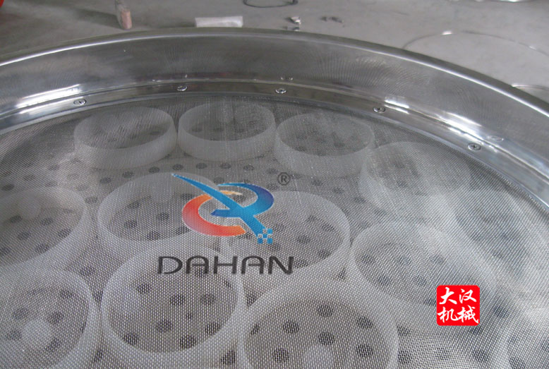 本篩分機為全不銹鋼材質,振動篩分機篩框、網架、篩網、沖孔板、防塵蓋、底桶以及彈簧外圍加304不銹鋼裙邊,該機內外拋光,無黑點,無毛刺。振動篩密封件以及彈跳球、擋球環均為食品、醫藥硅膠材質,網架結構為子母扣式壓網,篩面平整有張力。