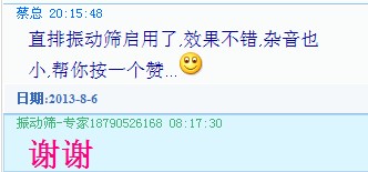 恭喜蔡總:直排篩已投入生產(chǎn)中,效果卓越,雜音小