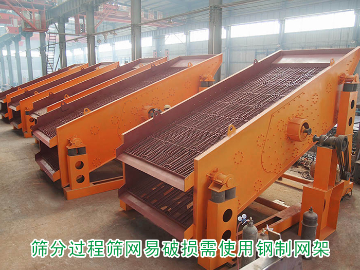 使用礦用篩分機進行篩分時,因其篩分的物料會有一定的的重量,使用普通網架容易造成破損的問題,所以需要使用鋼質網架來代替木質網架,增加網架和篩網的承受能力,更換為鋼制網架的大型礦用振動篩不僅換網比較方便,更可以延長篩網、篩機的使用壽命。