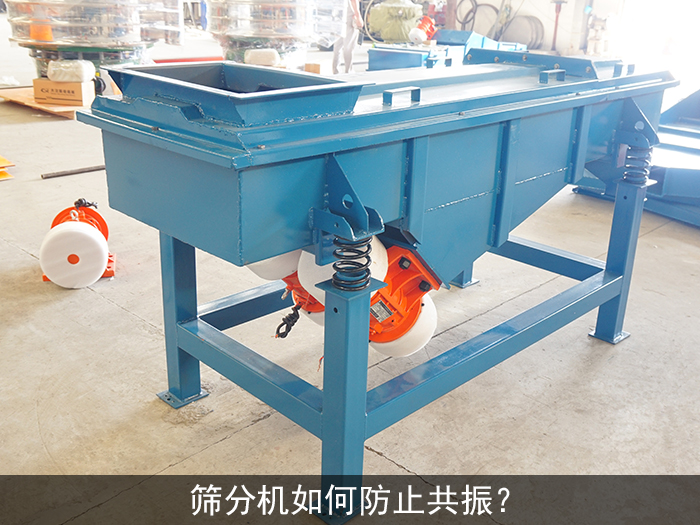 篩分機(jī)的振動(dòng)電動(dòng)需要安裝在很重的底盤上,可使篩機(jī)本身固有頻率增加,以增大與振動(dòng)電機(jī)的振動(dòng)頻率差距防止產(chǎn)生共振。