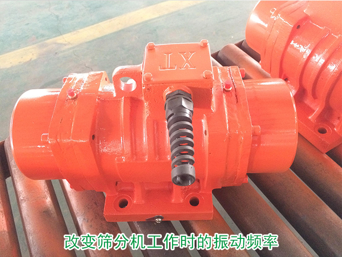 可改變篩分機(jī)工作時(shí)的振動(dòng)頻率與其自身固有的振動(dòng)頻率為不一致的頻率,可通過(guò)振動(dòng)電機(jī)改變篩分機(jī)的振動(dòng)頻率從而達(dá)到防止共振的目的。(可調(diào)節(jié)電機(jī)兩端的偏心塊夾角來(lái)改動(dòng)激振力的大小,夾角小,激振力變大,振幅變大;反之,夾角變大,激振力變小,振幅變小)。