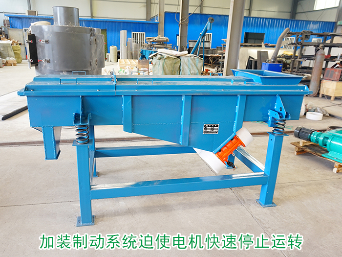 篩分機(jī)停機(jī)時(shí)因?yàn)閼T性會(huì)在某個(gè)特定時(shí)間段振動(dòng)頻率與篩機(jī)本身頻率一致從而發(fā)生共振,可在篩分機(jī)上加裝制動(dòng)系統(tǒng)在停車時(shí)給振動(dòng)電機(jī)加入反向電流,迫使電機(jī)快速停止運(yùn)轉(zhuǎn),使振動(dòng)頻率跳過(guò)篩機(jī)自身固有振動(dòng)頻率從而達(dá)到防止共振的目的。